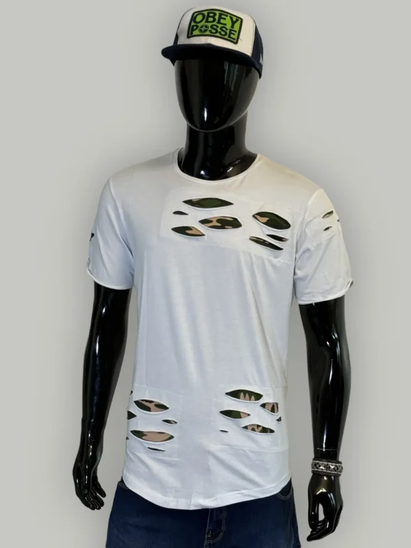 White Torn Camo Tee